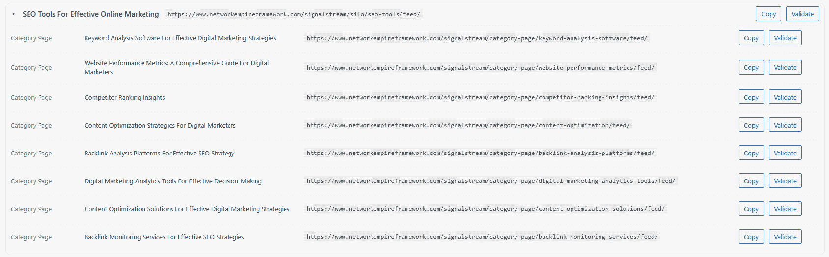 If you run an AI agent or automation pipeline (in tools like n8n, Zapier or custom scripts) you need stable, reliable feed endpoints that reflect your publishing structure—not a generic /feed/ with content jumbled together. With SignalStream you can point your automation at Silo-level feeds or Category-level feeds and ensure the logic downstream matches your content architecture.